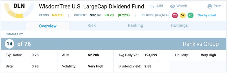 Wisdom Tree U.S. LargeCap Dividend ETF (DLN) (ETF Home)