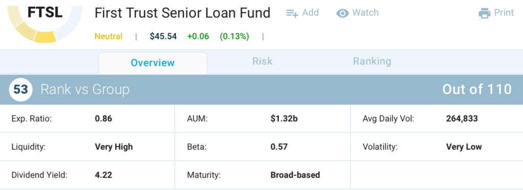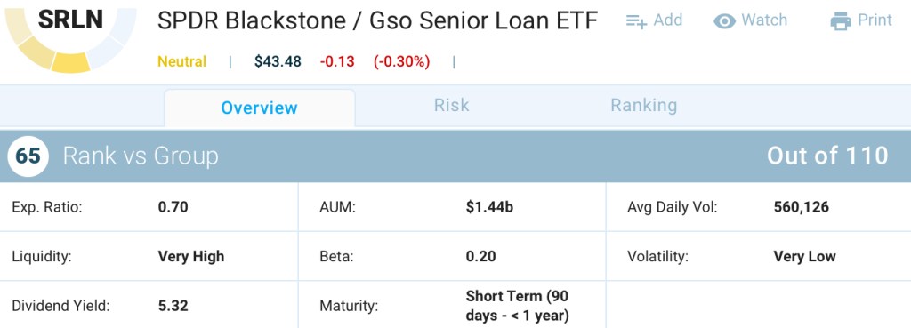 The neutrally ranked ETFs are First Trust Senior Loan Fund (FTSL) (ETF Home) and SPDR Blackstone GSO Senior Loan ETF (SRLN) (ETF Home).
