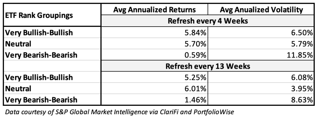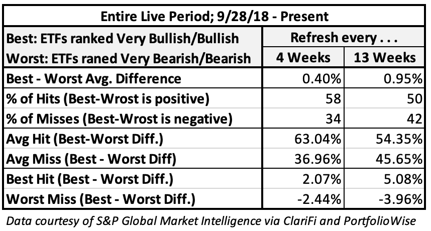 Despite the testing/measurement challenges, I suggest respecting the rank differentiation we see here given the recent magnitude of the suggested difference between Neutral Bearish/Very Bearish and the logic of the rank algorithm which should in and of itself motivate one to look into what might be causing Mr. Market (as our model interprets his message) to call out one of three seemingly similar ETFs.