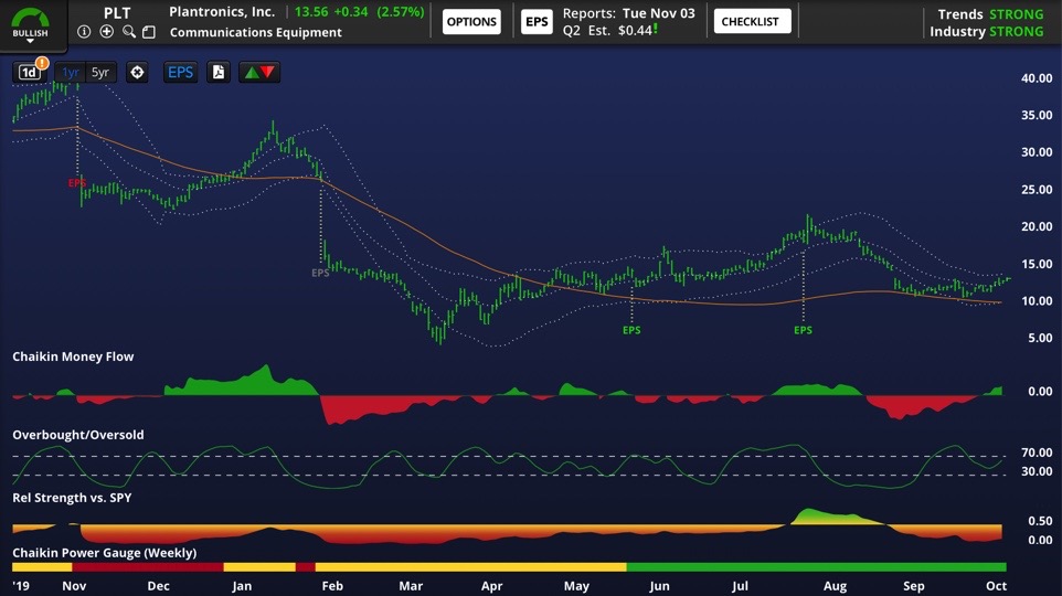 PLT’s 0.34 Price/Sales ratio tells us a lot, and no, its not telling us that the stock is a no-brainer Buy. It may well be a Buy (the Power Gauge rank is “Bullish”), but such a trade will need to be supported by brainpower. No matter what the gurus say, Mr. Market is not going to hand you a 0.34 Price/Sales ratio without expecting you to take on some baggage. Here, the baggage is the lingering financial impact of the company’s huge 2018 acquisition of Polycom, which broadened the product line, boosted sales, but also resulted in big increases in debt and R&D such as to drive a formerly-profitable income statement into the red. For today’s investment theme — future growth powered by emerging tech — I can and often do live with current red ink; its part of the landscape, so long as we have credible expectations that the company can grow its way to good profitability down the road, an especially noteworthy concern for small caps such as PLT, where fixed-cost burdens are commonplace. The story here involves contemporary communications, headsets, conference-call hardware, desktop phones, etc. With COVID-induced work at home, equipping for this activity has become a hot trend. COVID won’t last forever (so we all hope and presume), but although there may be a deceleration in distributed work groups, society is coming to realize there are a lot of benefits to the sort of workplace re-evaluations COVID forced on us, and many expect long-term re-thinking along these lines. PLT can’t at this time support such an investment case with current numbers. I can say, however, the the “Bullish” Power Gauge is being driven by valuation (on all ratios, not just P/S) and also by a “Very Bullish” rank in the five-factor Technicals category. That means we’re working with a wisdom-of-crowds type of market judgment. This is completely alien to academic notions of value investing, but it’s not as if those folks been setting the world in fire lately. If you want to try the sort of theory-expectations based approach to value I described above, let’s call this a high-risk/high-potential play in this area (the material to which I linked above also explains that low valuations are associated with higher business risk).