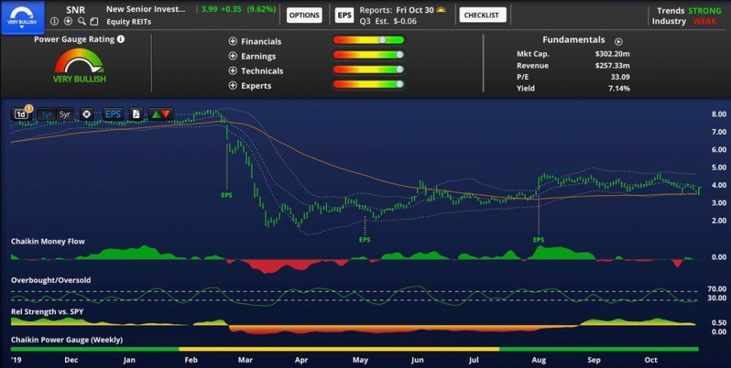 Tenth largest senior living housing operator with 100% private-pay clientele; diversified across 36 states with 65% of properties located outside of major metropolitan areas. Given all the covid-related problems that have heavily impacted this entire business, including SNR, the presence of any Bullish or Very Bullish indications relating to the stock has to be deemed eye-catching. Very Bullish overall rank.